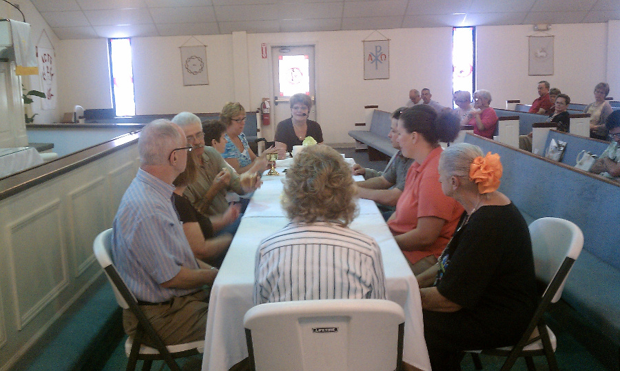 Communion today was done at a table. Debra was at one end with the bread and the cup, and congregation members would come sit at the table. She would pass the bread and cup to the person on her right who would in turn take communion and continue passing the items. It was a nice change of pace for communion, and it caused you to really think back to the origins of the ceremony.